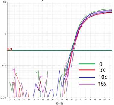 測定條件:將新配制的預混料再冷凍-解凍循環處理15次,并在5、10和15個循環處理后對樣品進行PCR測試。 即使經過15次的凍融循環也未觀察到酶活性的損失。 因此,一管RT-PCRMasterMix可以在20攝氏度下保存,并解凍15次以備常規使用。